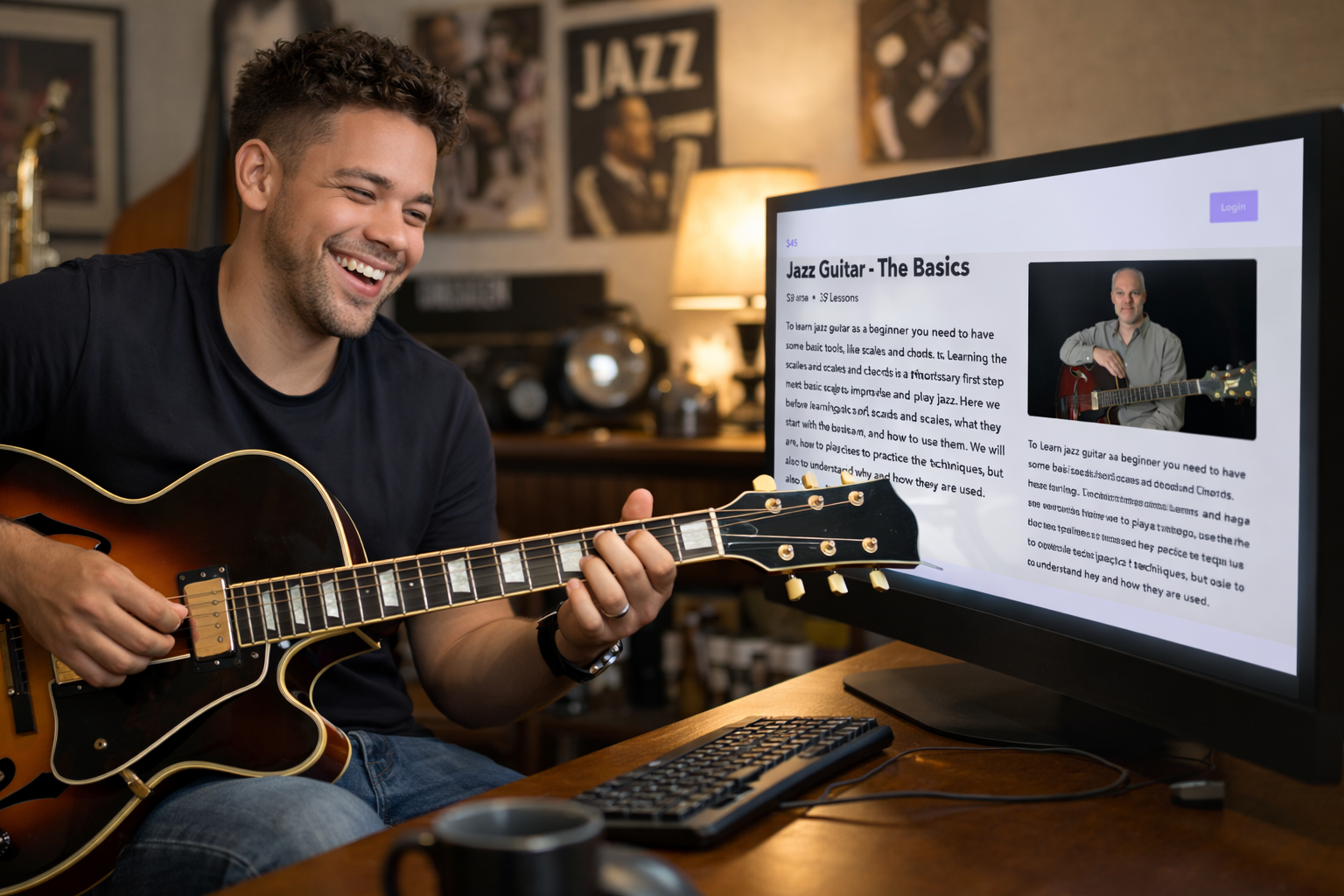 This site offers online jazz guitar courses at all levels, starting at the very beginning, and progressing up to advanced and mature soloing.